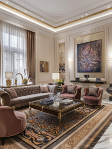 Experience refined sophistication with home interiors that blend the grace of classical architecture with contemporary comfort. Characterized by ornate moldings, grand columns, and a palette of soft neutrals and gold accents, this style exudes luxury while remaining warm and inviting. Timeless beauty & symmetry.